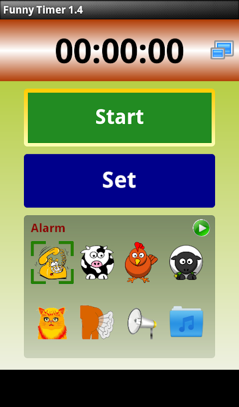 เวลาที่ตลกคือการจับเวลาที่ง่ายและสะดวกและการนับถอยหลังที่มี 7 สัญญาณเตือนตลกที่แตกต่างกันเสียงแหวนวัวบ้า Chiken โกรธแมวมีความสุขผายลมน่าเกลียดไซเรนเตือนภัยและแกะที่ยอดเยี่ยม นอกจากนี้คุณยังสามารถใช้เสียงเรียกเข้าของอุปกรณ์ของคุณและเสียงสัญญาณเตือนภัย