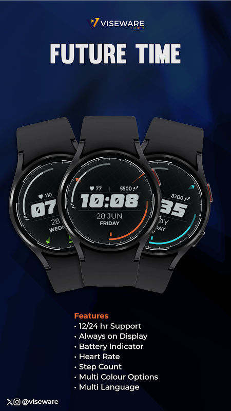 Future Time หน้าปัดนาฬิกาดิจิทัลที่ทันสมัยและล้ำสมัยสำหรับ Wear OS การออกแบบสำหรับนาฬิกาทรงกลม หน้าปัดนาฬิกาดิจิตอลที่ทันสมัยนี้ผสมผสานฟังก์ชันการทำงานและความสง่างามเข้าด้วยกัน มอบประสบการณ์การบอกเวลาที่น่าพึงพอใจ แสดงเวลาเป็นตัวเลขดิจิทัลในรูปแบบมินิมอลลิสต์ ให้รูปลักษณ์หน้าปัดนาฬิกาดิจิตอลที่สะอาดตา หน้าปัดนาฬิกาดิจิทัล Wear OS นี้อัดแน่นไปด้วยคุณสมบัติที่จำเป็น เช่น การแสดงผลที่เปิดตลอดเวลาและตัวแสดงแบตเตอรี่ การนับก้าวของกีฬา และการแสดงอัตราการเต้นของหัวใจ รับรองว่าคุณจะมีสไตล์และรับทราบข้อมูลอยู่เสมอ