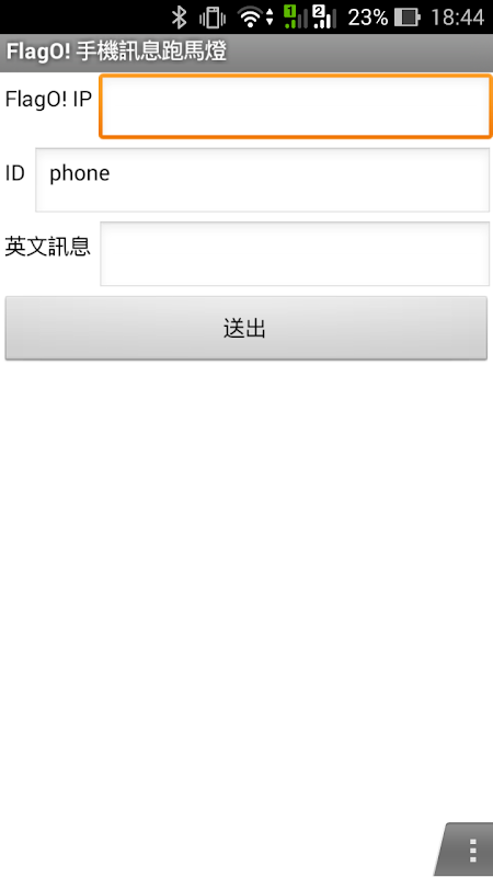 這是搭配旗標科技公司 FWIDE 教學套件使用的 App, 可控制 LED 七採燈模組顯示英數字跑馬燈訊息, 或是讓組合成方陣的 4 個 LED 模組顯示中文訊息, 由 App Inventor 開發而成, 示範如何由手機傳送訊息給 FlagO! 主控模組。