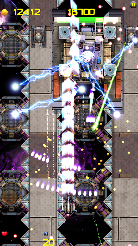- ทำลายศัตรูทั้งหมดในทางของคุณและรวบรวมเหรียญและเพิ่มพลังให้กับยานอวกาศของคุณ