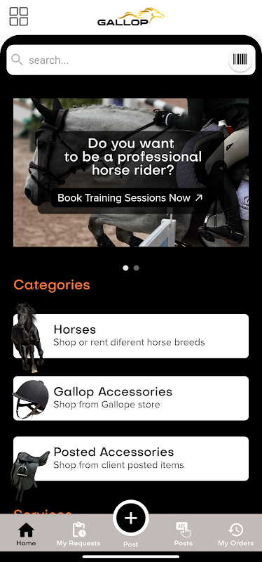 Gallop app deals in feeding pellets, feed supplements, vitamins, horse trailers, as well as horse and rider equipments.