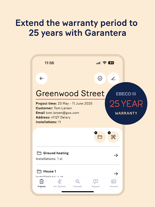 Garantera คือแอปของ Ebeco สำหรับการบันทึกข้อมูลการติดตั้งสายทำความร้อนอย่างมืออาชีพ