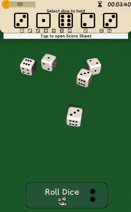 ผู้เล่นผลัดกันทอยลูกเต๋า 5 ลูก หลังจากทอยแต่ละครั้ง คุณสามารถเลือกว่าจะเก็บลูกเต๋าลูกใด (ถ้ามี) หรือถือไว้ จากนั้นจะทอยซ้ำลูกเต๋าลูกอื่นๆ สามารถทอยซ้ำได้สูงสุด 2 ครั้ง