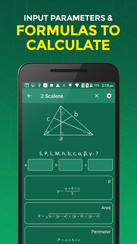 GeometrySoln เป็นเครื่องคิดเลขเรขาคณิตสำหรับนักเรียนและครูซึ่งจะทำให้การคำนวณเรขาคณิตง่ายมากและรวดเร็ว จากการคำนวณขั้นพื้นฐานของปริมณฑลของสแควร์เพื่อการคำนวณปริมาตรของลูกบาศก์ที่คุณจะได้รับมันทั้งหมด จะแสดงสูตรในการคำนวณเดียวกันและจะคำนวณปริมณฑลพื้นที่ปริมาตร ฯลฯ นอกจากนี้ยังจะแสดงขั้นตอนในการคำนวณรายละเอียดเกี่ยวกับวิธีการที่ผลที่ได้รับ