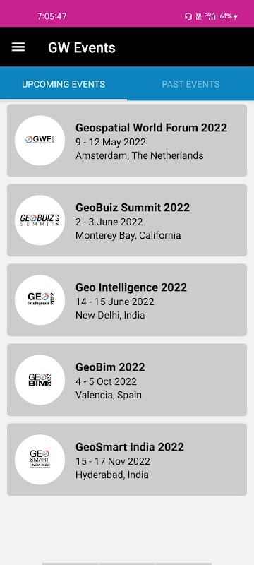 GW Events - The Geospatial World app will enable attendees to get the most out of Geospatial World events – browse the event agenda, search for exhibitors, or see the speaker line-up, among other practical information. The exclusive networking platform allows attendees to view a list of other attendees, select attendees to network with, and pre-arrange meetings at the event.
