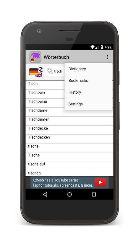 พจนานุกรมภาษาเยอรมันที่เป็นประโยชน์มีพจนานุกรมที่ครอบคลุมอย่างมหาศาล (มากกว่า 240 000 คำและวลี!) ที่สามารถดาวน์โหลดไปยังโทรศัพท์ของคุณสำหรับการใช้งานแบบออฟไลน์ได้ตลอดเวลา เหมาะสำหรับผู้เริ่มต้นและอื่น ๆ นักเรียนเยอรมันผู้เชี่ยวชาญ มันเป็นฟรีและทำงานแบบออฟไลน์ 100% พจนานุกรมนี้คือใช้งานง่ายและเหมาะสำหรับการเดินทางการทำงานหรือการศึกษา