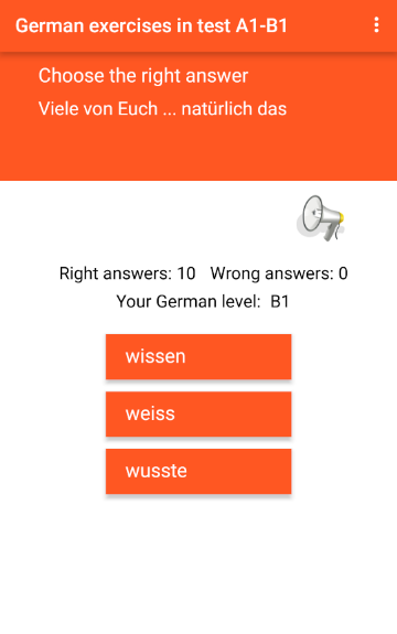Grammar exercise are divided into categories A1, A2 and B1. It is recommended to start the test from the simple to the complex. Be sure to train your pronunciation, until it becomes like a right.