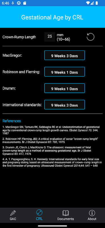 วิธีการที่ใช้ในการเข้าถึงอายุครรภ์ ได้แก่ วันที่ทราบวันตกไข่ วันที่ประจำเดือนครั้งสุดท้าย และอัลตราซาวนด์เพื่อการวินิจฉัย (CRL; ความยาวตะโพกในไตรมาสแรก)