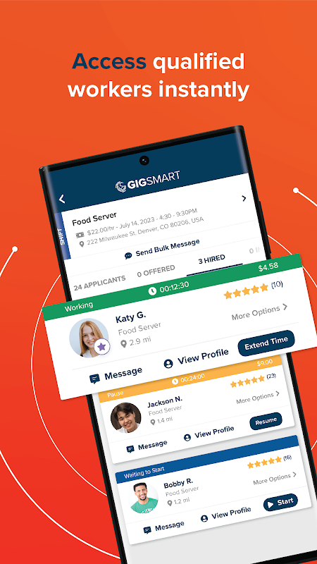 ไม่ว่าคุณจะต้องการจ้างพนักงานชั่วคราวตามความต้องการหรือเปิดตำแหน่งเต็มเวลา/นอกเวลา GigSmart ให้การสนับสนุนโดยมนุษย์อย่างแท้จริงและรูปแบบธุรกิจที่สอดคล้องกับข้อกำหนดเฉพาะของบริษัทของคุณ ขจัดความยุ่งยากและความเครียดในการหาคนงานที่ยอดเยี่ยม - กำหนดอัตราค่าจ้าง คัดเลือกคนงานของคุณ หรือปล่อยให้เทคโนโลยีการจ้างงานของเราทำงานอย่างหนักให้กับคุณ