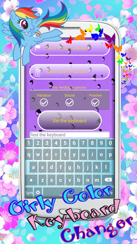 ✦✿Girly Color Keyboard Changer✿ offers you numerous beautiful themes, specially designed for girly girls. Choose the desired background theme and one of many girly wallpapers to enhance your touch keyboard. Change keyboard cover in a second and beautify it with dynamic layouts, glitter stickers and cute girls images. Make your own keyboard skin by using colorful background images and stylish designs. For more fabulous look add some special effects to your best ‘‘keyboard design’’.