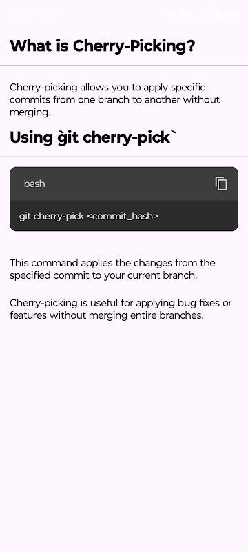 Git Guru เป็นแอปที่ดีที่สุดในการเรียนรู้ Git และ GitHub และกลายเป็นกูรู GitHub ไม่ว่าคุณจะเพิ่งเริ่มต้นหรือเป็นนักพัฒนาที่มีประสบการณ์และกำลังปรับปรุงทักษะของคุณ Git Guru มอบประสบการณ์การเรียนรู้ที่ครอบคลุม ตั้งแต่คำสั่ง Git พื้นฐานไปจนถึงเวิร์กโฟลว์ GitHub ขั้นสูง แอปนี้ช่วยให้แน่ใจว่าคุณเชี่ยวชาญ Git และ GitHub ตามที่คุณต้องการ
