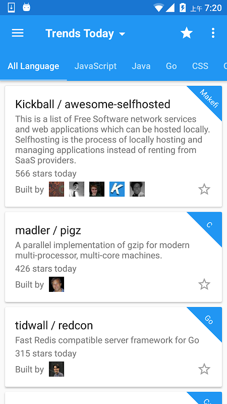 The Best Repo Trends Explorer for Github with Material Design.