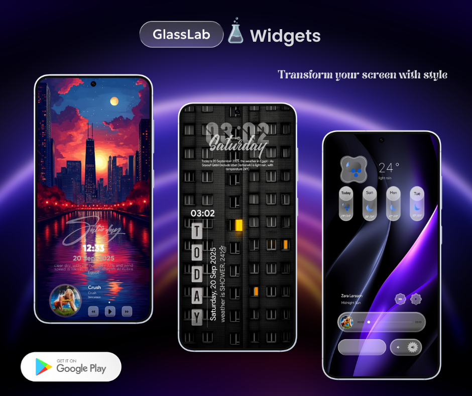 เปลี่ยนหน้าจอหลักของคุณให้สวยสะดุดตาด้วย GlassLab – คอลเลกชันวิดเจ็ตฟรีสุดอลังการที่ผสานความงาม ความเรียบง่าย และสุนทรียศาสตร์ของกระจกไว้ในที่เดียว!
