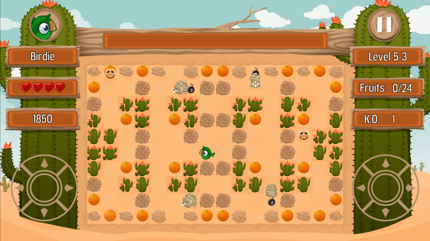 ในเกม Go! Birdie คุณจะต้องหลีกเลี่ยงศัตรูและเก็บผลไม้ทั้งหมด