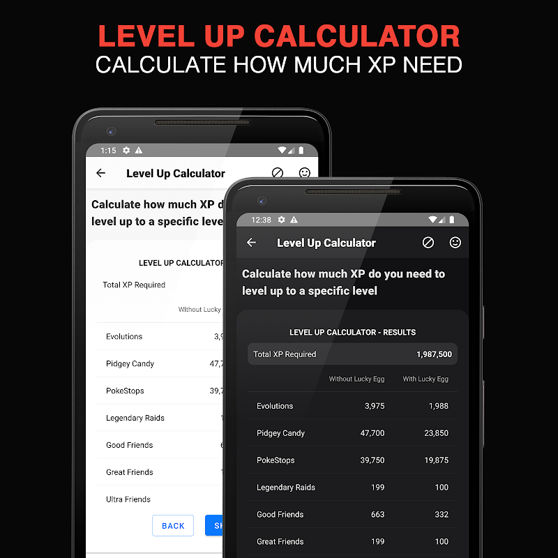 รายการตรวจสอบเงา, Pokedex, กิจกรรม, งานวิจัย, เครื่องคิดเลข XP สำหรับ Pokemon GO