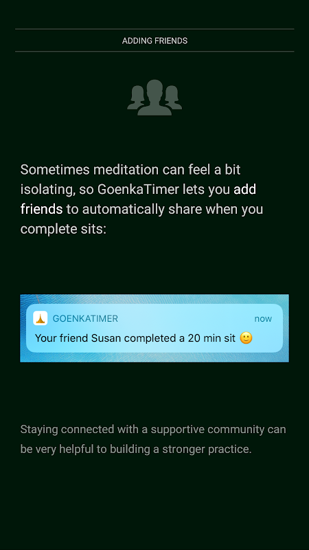 แจ้งผู้ทำสมาธิโดยอัตโนมัติเมื่อใดก็ตามที่คุณนั่งจนเสร็จ