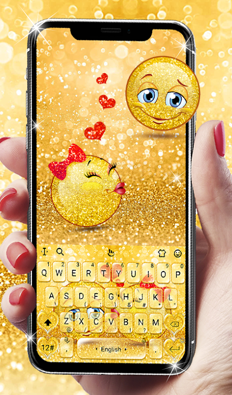 Decorate your phone keyboard with Golden Glitter Lovely Emoji Keyboard