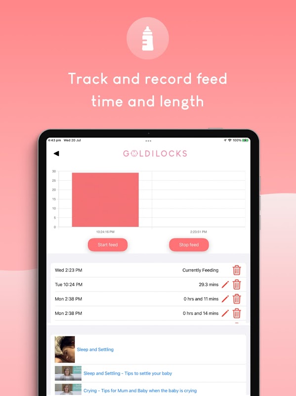 อุปกรณ์เฝ้าดูทารกที่ออกแบบและพัฒนาในออสเตรเลีย ช่วยให้พ่อแม่มือใหม่สบายใจในขณะที่เฝ้าติดตามและบันทึกอุณหภูมิของทารกรูปแบบการนอนการหายใจการให้อาหารและพัฒนาการของทารก ข้อมูลที่อ่านง่ายและคำแนะนำการเลี้ยงดูมีให้ผ่านแอพสมาร์ทโฟน Goldilocks ที่ใช้งานง่ายสำหรับ iOS หรือ Android