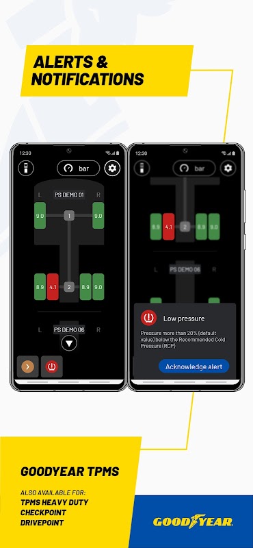 ในกรณีที่มีสิ่งผิดปกติ การแจ้งเตือนและการแจ้งเตือนจะแจ้งให้ผู้ขับขี่ทราบทันทีโดยเน้นว่ายางใดได้รับผลกระทบและระดับความเร่งด่วน ให้การเข้าถึงข้อมูลยางในทันทีและใช้งานง่าย แอพช่วยให้มั่นใจได้ว่าสามารถดำเนินการที่ถูกต้องโดยไม่ชักช้า
