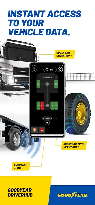 แอป Goodyear DriverHub ได้รับการปรับแต่งเป็นพิเศษสำหรับผู้ขับขี่และให้ข้อมูลที่สม่ำเสมอเกี่ยวกับสภาพของยางรถยนต์/เครื่องจักร เชื่อมต่อกับโซลูชันการจัดการยางที่ขับเคลื่อนด้วยข้อมูลของเรา (Goodyear DrivePoint, Goodyear CheckPoint, Goodyear TPMS และ Goodyear TPMS Heavy Duty) แอปนี้จะช่วยให้ผู้ขับขี่ของคุณตัดสินใจอย่างเหมาะสมเพื่อช่วยลดเหตุการณ์ที่เกี่ยวข้องกับยางและสนับสนุนการเสริมความปลอดภัยให้กับกองเรือของคุณ