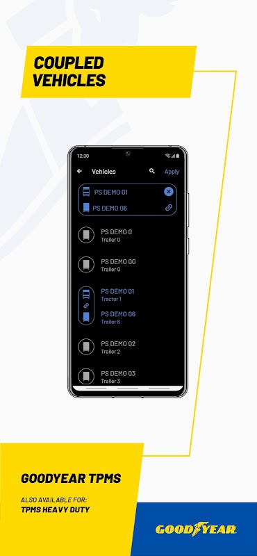 แอป Goodyear DriverHub ใช้ได้กับโซลูชันต่อไปนี้เท่านั้น: Goodyear DrivePoint, Goodyear CheckPoint, Goodyear TPMS และ Goodyear TPMS Heavy Duty โปรดทราบว่าการสมัครสมาชิกตามสัญญากับหนึ่งในโซลูชั่นเหล่านี้เป็นสิ่งจำเป็นในการเข้าถึงแอปพลิเคชันมือถือ