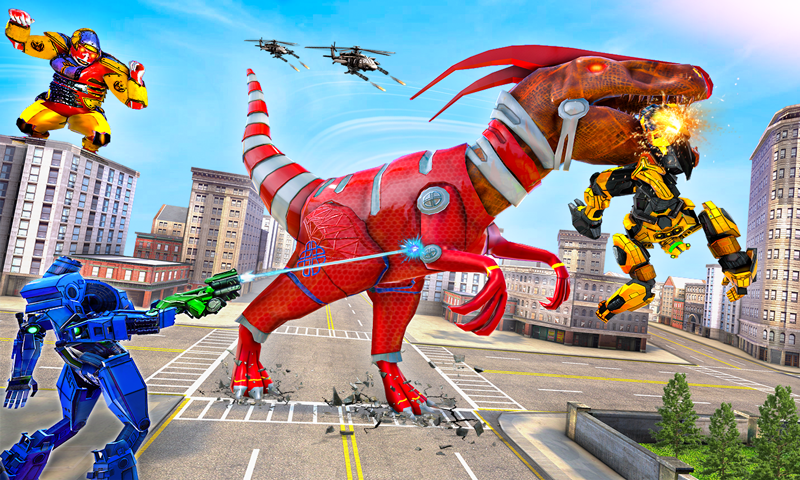 The city smasher robots are here to destroy all other enemy robots. Select the dangerous anima robot and enjoy the mech robot war in robot transformation game. Get your angry gorilla robot vs wild dino robot fight interesting by getting them futuristic weapons in intense robot battle & robot shooting game. Make the right choice and unleash the monster robot in wild dino city smasher robot game.