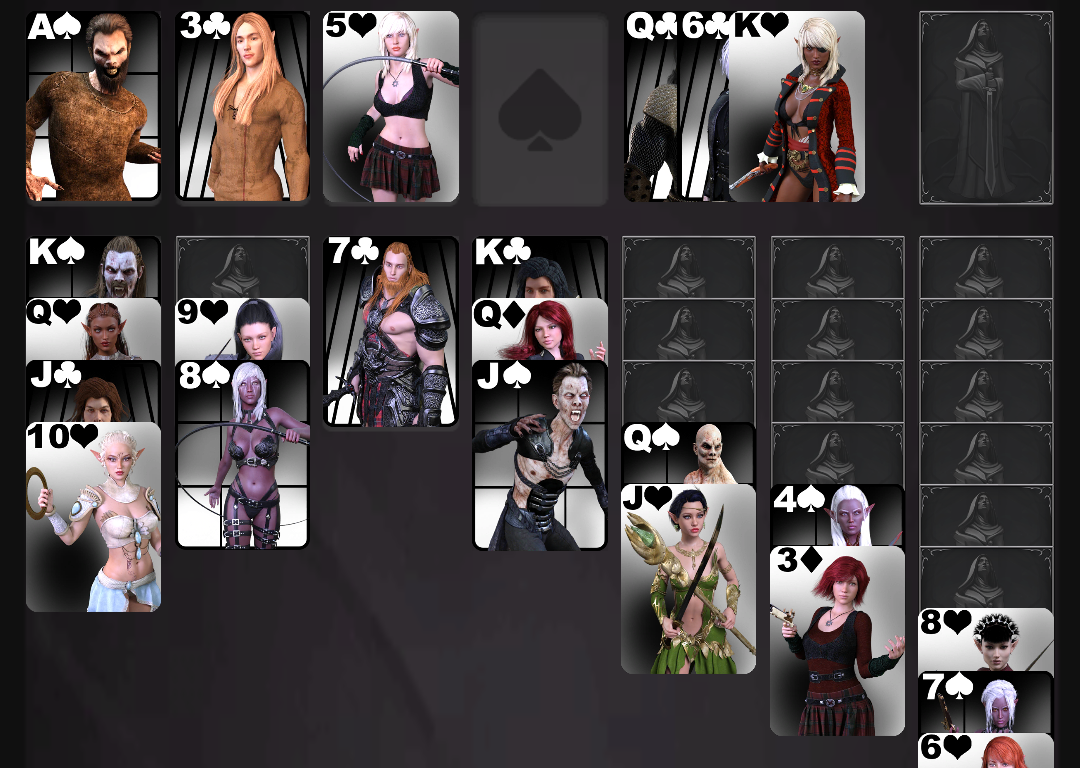เล่นไพ่คนเดียว Klondike กับรูปภาพของตัวละครโกธิค / แฟนตาซีมืด