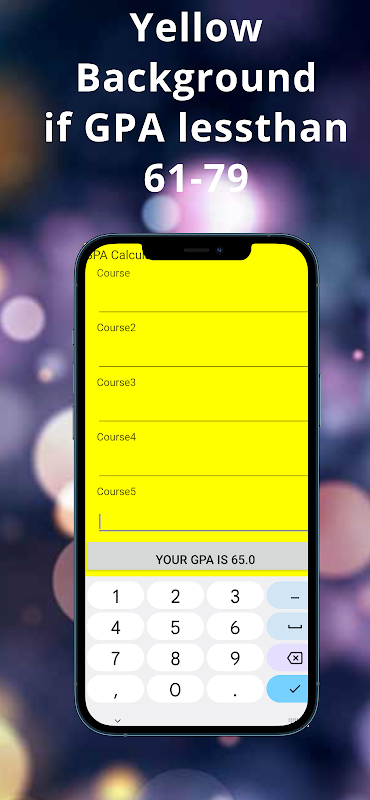 ควบคุมเกรดของคุณด้วยเครื่องคำนวณ GPA ที่ใช้งานง่ายของเรา! เพียงกรอกเกรดของคุณได้สูงสุด 5 หลักสูตร จากนั้นแอปจะคำนวณเกรดเฉลี่ยของคุณทันทีและแสดงบนหน้าจอ