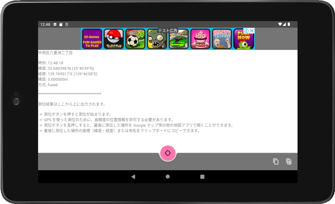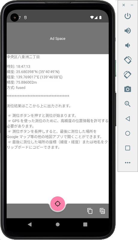 แอพระบุตำแหน่ง GPS อย่างง่ายที่รองรับที่อยู่ในญี่ปุ่น (reverse geocoding)