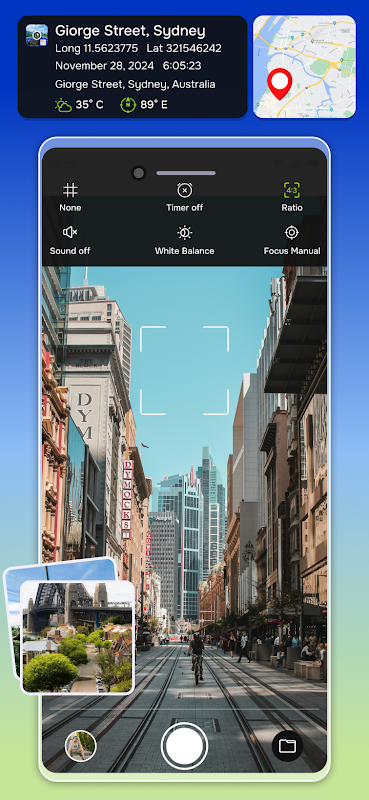 บันทึกช่วงเวลาสำคัญของคุณอย่างครบถ้วนด้วยแอป GPS Camera - Location & Map อันชาญฉลาดและใช้งานง่าย คุณสามารถเพิ่มตำแหน่งจากกล้อง GPS แผนที่สด ประทับเวลา และบันทึกย่อแบบกำหนดเองลงในภาพถ่ายของคุณ คุณสามารถเพิ่มข้อมูลที่แม่นยำได้ทุกครั้งที่ถ่ายภาพการเดินทาง การทำงานภาคสนาม หรือสถานที่ปฏิบัติงาน