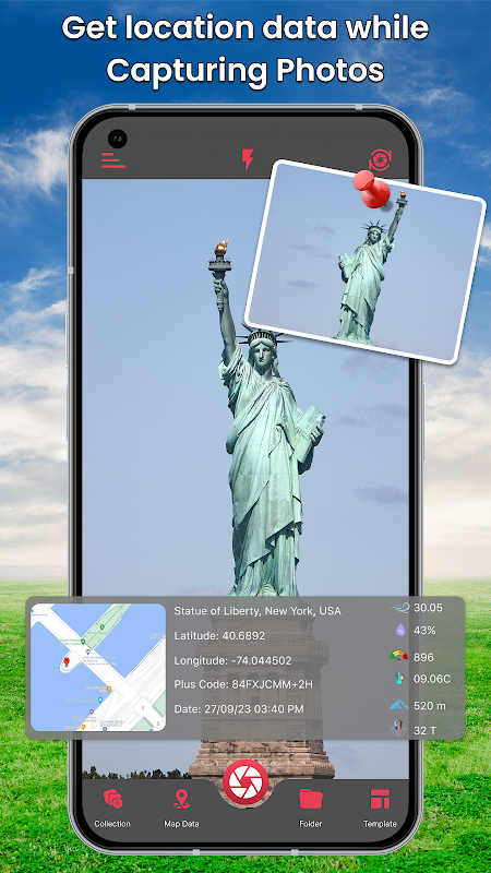 เริ่มคลิกรูปภาพโดยอัตโนมัติ เทมเพลตเริ่มต้นจะปรากฏบนรูปภาพของคุณ เทมเพลตจะมีข้อมูลละติจูดและลองจิจูด รหัส Plus วันที่ เวลา ที่อยู่ ความชื้น ความเร็วลม และความดัน หากคุณต้องการเปลี่ยนแปลงข้อมูลใดๆ หรือต้องการแสดงเฉพาะข้อมูลเฉพาะพร้อมข้อมูลบางอย่าง เพียงไปที่แท็บเทมเพลตแล้วแก้ไขตราประทับตำแหน่งของคุณด้วยข้อมูลที่คุณเลือก คุณสามารถไปที่ข้อมูลแผนที่เพื่อเปลี่ยนที่อยู่ของคุณได้ คุณยังสามารถตั้งค่าที่อยู่ของคุณตามที่คุณต้องการโดยเลือกตัวเลือกด้วยตนเอง