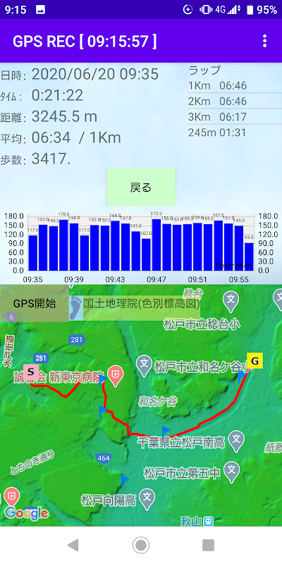 このアプリはスマホのGPS機能を利用して走行ルートや距離・走行時間を記録するものです。