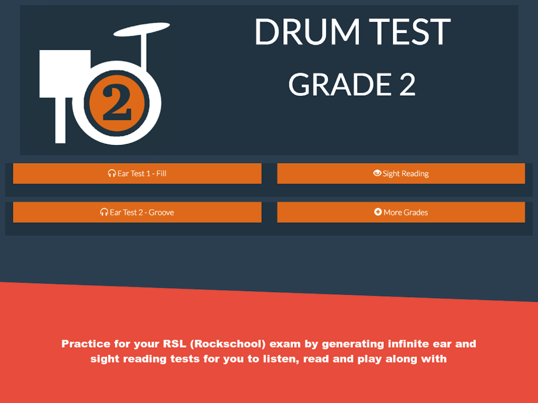Practice for your RSL (Rockschool) Grade 2 drum kit exam. This useful app will generate ear and sight reading tests for you to listen, read and play along with in preparation for your exam.