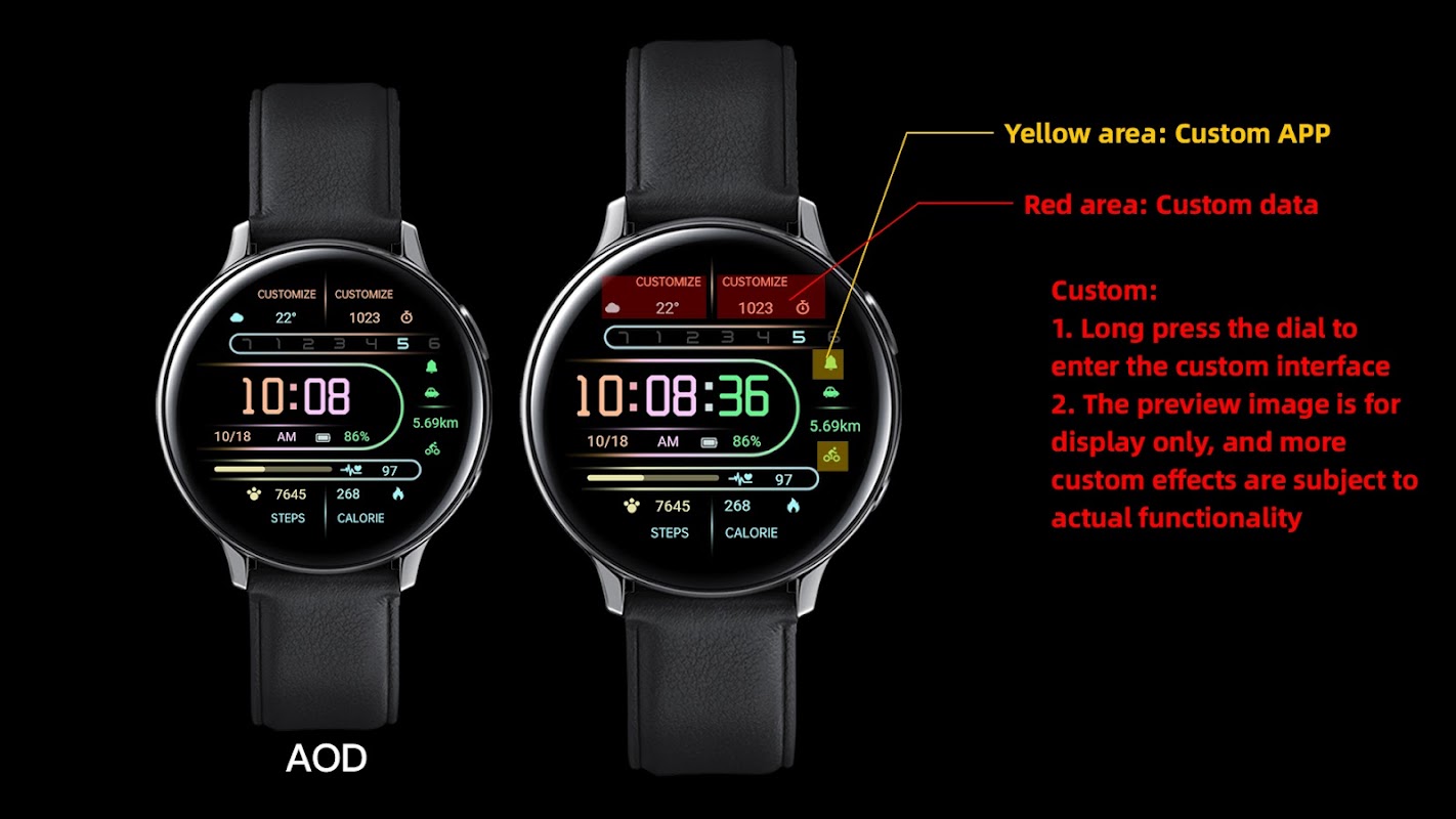 2. ศูนย์กลาง: แอพแบบกำหนดเอง, เวลา, ระยะทาง, วันที่, เช้าและบ่าย, ระดับแบตเตอรี่, แอพแบบกำหนดเอง