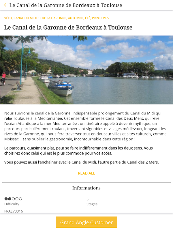 แอพ Grand Angle เป็นคู่มือเสมือนของคุณ บนเส้นทางเดินป่าหรือเส้นทางจักรยานของการเดินทาง Grand Angle แอปพลิเคชันจะระบุตำแหน่งของคุณได้ตลอดเวลาในแผนการเดินทางที่วางแผนไว้สำหรับโปรแกรม ด้วยแอปพลิเคชันไม่มีความเสี่ยงในการค้นหาวิธีการของคุณ นอกจากตำแหน่งของคุณคุณรู้ว่าคุณต้องไปให้ไกลแค่ไหน แผนที่ฐานทำงานโดยนักทำแผนที่และอยู่ใกล้กับมาตรฐานที่ดีที่สุดของแผนที่ภูเขา แน่นอนว่าแอปพลิเคชั่นนี้มีคำอธิบายอย่างละเอียดและเป็นลายลักษณ์อักษรเกี่ยวกับเส้นทางเพื่อประสบการณ์ที่ดีที่สุด