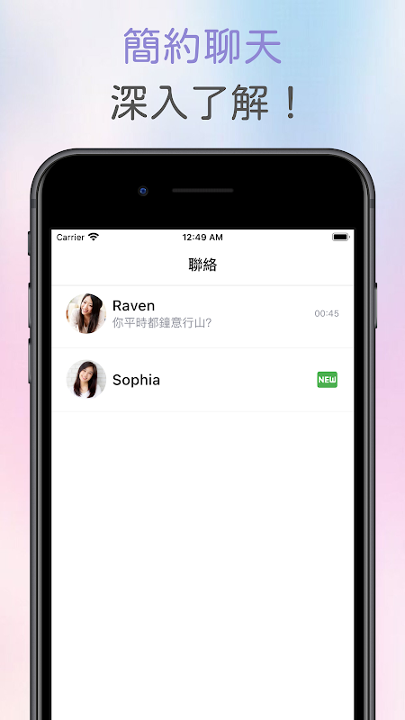 หลังจากที่ทั้งสองฝ่ายเต็มใจที่จะสื่อสาร พวกเขาสามารถแชทในแอปเพื่อการโต้ตอบแบบเรียลไทม์และความเข้าใจในเชิงลึก