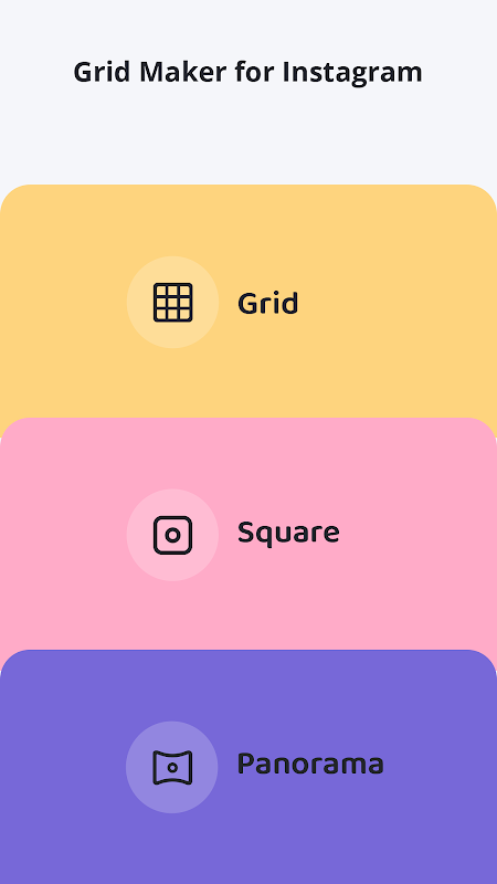 2. ตอนนี้ คุณต้องเลือกสิ่งที่คุณต้องการทำ เช่น สร้าง Giant Square Grid, Panorama Cut หรือ Square Size Pics
