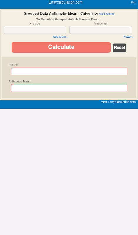 Grouped data arithmetic mean calculator: Helps you to find the arithmetic mean of grouped data.