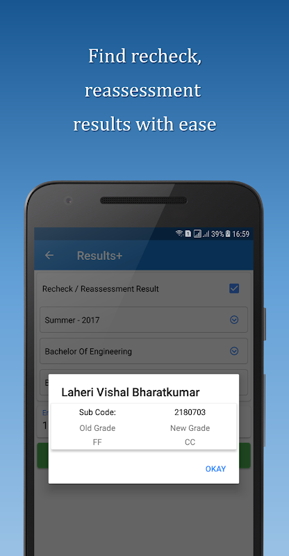 GTU Plus + ยังช่วยให้นักเรียนที่จะดูประวัติการเกรดของพวกเขาในการประยุกต์ใช้ตัวเอง