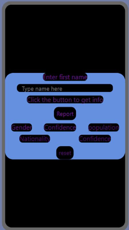 แอปอนุญาตให้คุณพิมพ์ชื่อและหลังจากที่คุณคลิกปุ่มรายงาน แอปจะเดาสัญชาติและเพศโดยใช้ความมั่นใจ