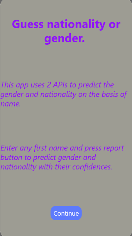 นี่คือแอปพลิเคชันล้ำสมัยที่ควบคุมพลังของปัญญาประดิษฐ์เพื่อให้ข้อมูลเชิงลึกเกี่ยวกับเพศและสัญชาติที่เกี่ยวข้องกับชื่อที่กำหนด