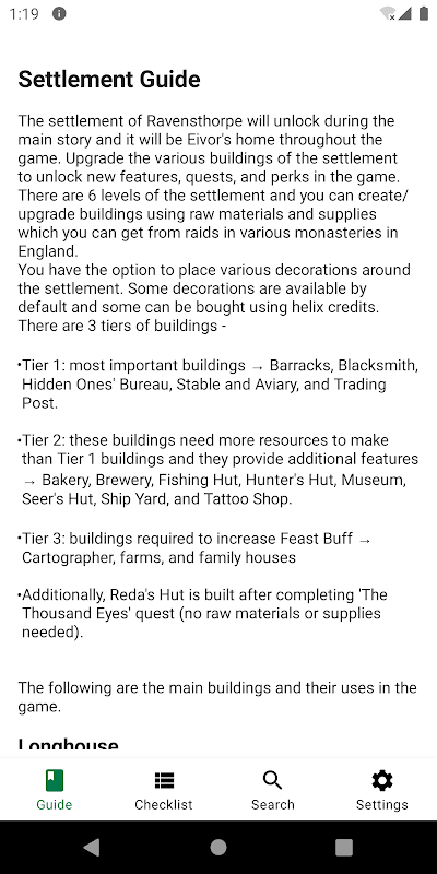 ข้อมูล Guide, Checklist - AC Valhalla APK