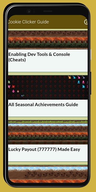 Looking for Cookie Clicker game guides? This Cookie Clicker game guides app gives you information about All Seasonal Achievements Guide, How to Cheat (100% Achievement Guide), Shadow Achievements Guide, God Complex Achievement Guide, Quick Immediate Achievements Guide, and many more...