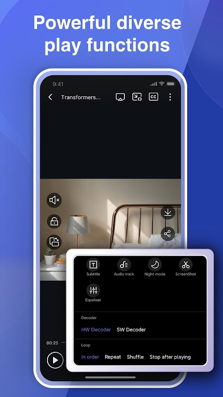 รองรับฟังก์ชั่นการเล่นขั้นสูงที่หลากหลาย เช่น การปรับความเร็ว การปรับขนาดหน้าจอ การปรับคำบรรยาย และหน้าต่างลอย ทำให้ประสบการณ์การเล่นวิดีโอของคุณเหนือจินตนาการ