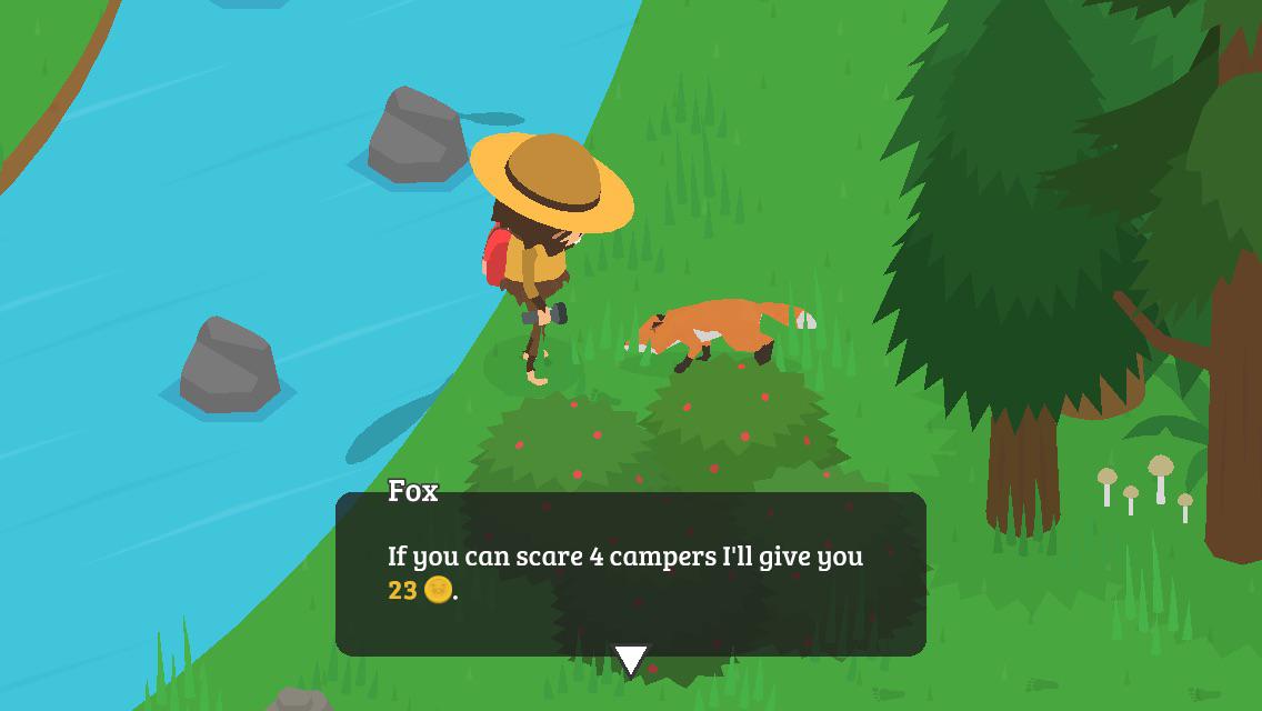 While doing so, he needs to make sure the campers don't see him, or else he will be chased by the rangers who will promptly send our friendly sasquatch back home. It's a very wholesome game that features some beautiful colours and overall art.