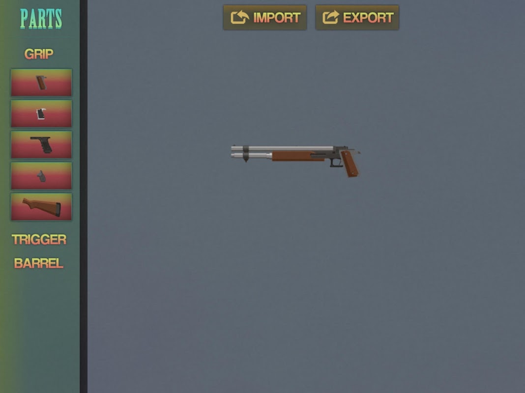 สร้างปืนหลากหลายแบบในโหมดก่อสร้าง หรือเข้าสู่โหมดออกแบบเพื่อสร้างปืนของคุณเอง ส่งออกและนำเข้าผลงานสร้างสรรค์ของคุณเพื่อแบ่งปันด้านความคิดสร้างสรรค์ของคุณกับเพื่อน ๆ