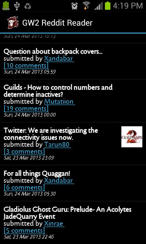 Keep up to date with the latest news and discussions on Guild Wars 2 Reddit with the GW2 Reddit Reader - pulling straight from Reddit to give you the up-to-date news quick and easy.