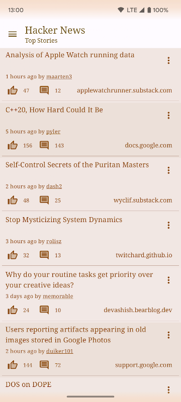 แอพ Hacker News ที่รองรับ Android 12 Material You บนโทรศัพท์และแท็บเล็ต
