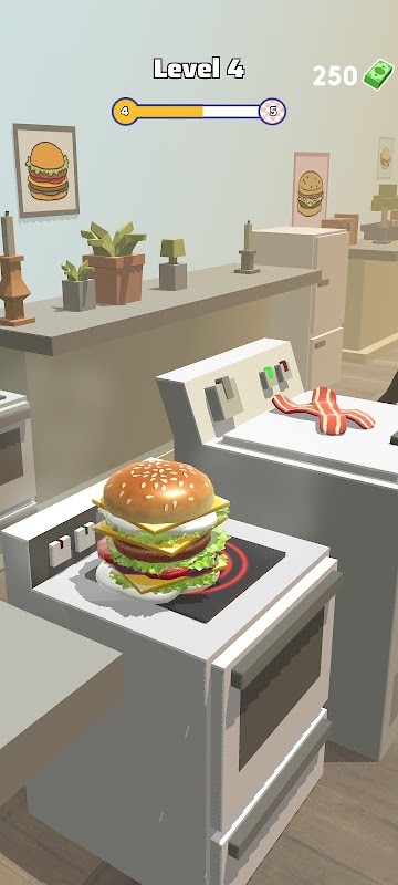 แตะเพื่อพลิกแฮมเบอร์เกอร์ เคลื่อนที่ต่อไปและรวบรวมส่วนผสมเพิ่มเติม