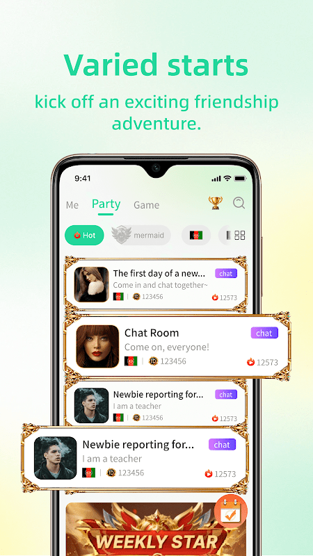 [ทำลายวงจรอย่างง่ายดาย เข้าสังคมอย่างไร้ขีดจำกัด]: ปาร์ตี้ธีมต่างๆ จัดขึ้นอย่างต่อเนื่อง ตั้งแต่งานคาร์นิวัลดนตรีไปจนถึงการแชทในที่ทำงาน พบปะผู้คนที่น่าสนใจจากทั่วโลกได้อย่างง่ายดาย แชทส่วนตัวได้ทั้งแบบเสียงและข้อความ มั่นใจได้อย่างปลอดภัยในพื้นที่ส่วนตัว เริ่มปาร์ตี้เสียงหลายคนได้ในคลิกเดียว และเพลิดเพลินไปกับความสุขที่ซิงโครไนซ์กันแม้จะอยู่คนละฟากมหาสมุทร!